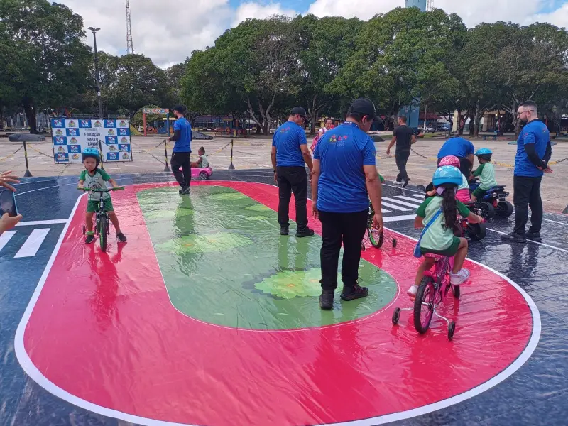 Em Castanhal, as atividades acontecem na Praça do Estrela e são voltadas para as escolas durante a semana e aberta ao público aos fins de semana. No primeiro dia de atendimento, os alunos da educação infantil da Escola Municipal Maria de Lourdes Marques Melo aproveitaram a aula fora do espaço escolar para se divertir e aprender sobre as principais regras de trânsito.