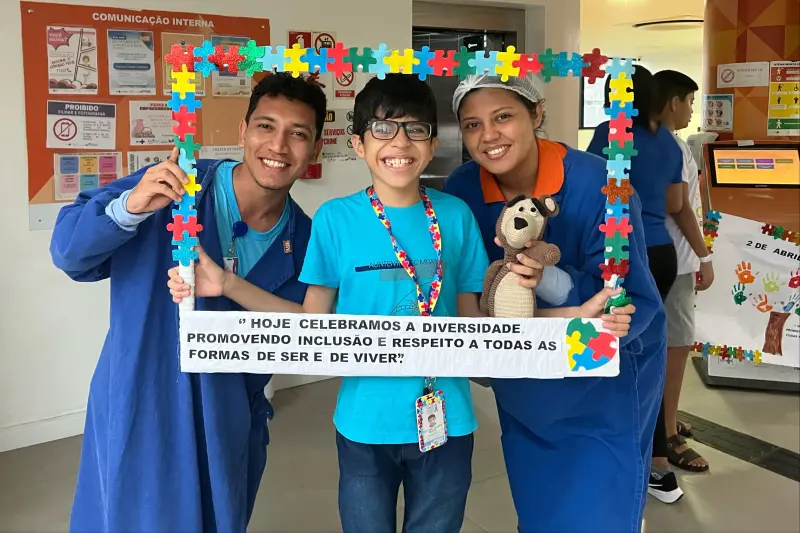Para promover essa conscientização, o Centro de Reabilitação, em parceria com o Grupo de Trabalho de Humanização (GTH) e o setor de Arte e Cultura, organizou caminhada no CIIR e no Centro Especializado em Transtorno do Espectro Autista (Cetea). A atividade reuniu usuários, familiares e a equipe multiprofissional, combinando intervenção terapêutica com uma ação de educação em saúde baseada na Política de Humanização do Ministério da Saúde.