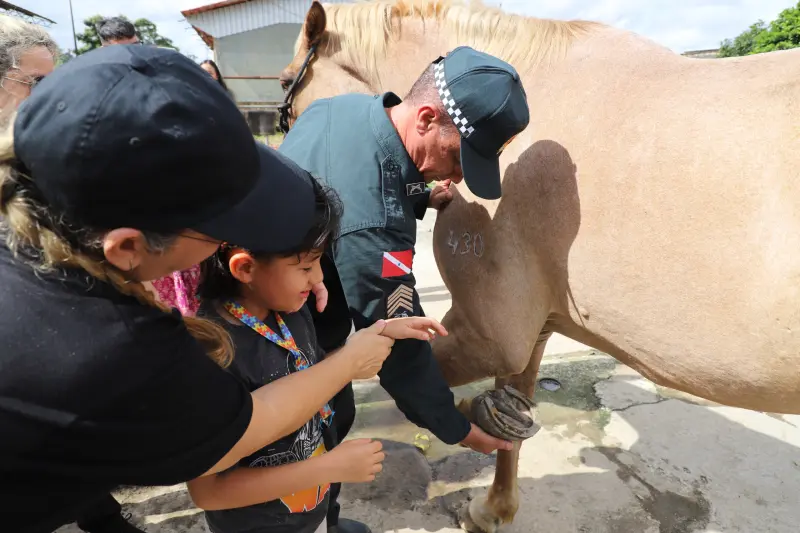 A ação foi direcionada aos participantes do Centro Interdisciplinar de Equoterapia da PM e seus familiares. Durante o evento, que contou com uma programação diversificada, os visitantes puderam vivenciar atividades relacionadas ao contexto equestre, incluindo visita às baias e à área de manejo e preparo dos equinos utilizados nos atendimentos diários.