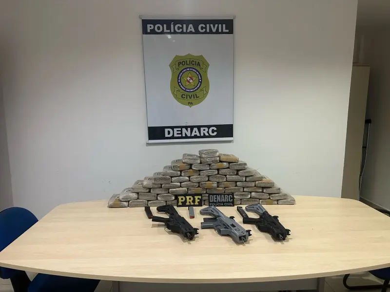 Três fuzis calibre 9 milímetros, fabricados com impressoras 3D, e mais de 53 tabletes de drogas do tipo skunk foram apreendidos durante uma operação conjunta da Polícia Civil e Polícia Rodoviária Federal (PRF), realizada na tarde desta terça-feira (7), em Benevides, na Região Metropolitana de Belém. Na ação, dois homens também foram presos em flagrante por tráfico de drogas e porte ilegal de arma de fogo.