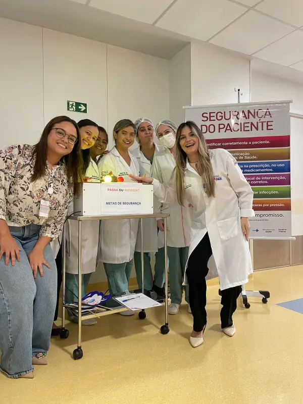 Cultura de segurança - Para a coordenadora do Núcleo de Educação Permanente (NEP), Daiane Nunes, o olhar lúdico fortalece as informações compartilhadas, sendo um diferencial para promover a participação dos profissionais. “Trabalhar as metas de segurança de forma lúdica é uma estratégia que facilita o aprendizado e a memorização, ativando o engajamento das equipes e promovendo uma participação com maior entusiasmo. Essas atividades não apenas transmitem conhecimentos, mas também influenciam atitudes, ajudando a transformar a cultura de segurança do paciente de forma contínua”, frisou a profissional.