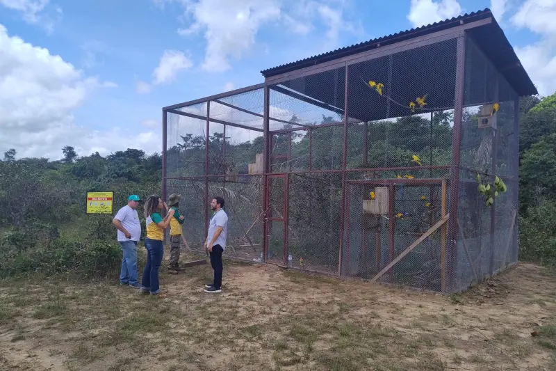 Com o olhar voltado à conservação da biodiversidade amazônica, o Instituto de Desenvolvimento Florestal e da Biodiversidade do Pará (Ideflor-Bio) deu mais um passo estratégico no Projeto de Reintrodução e Monitoramento de Ararajubas. Técnicos da Gerência de Biodiversidade (GBio) e do Núcleo de Tecnologia da Informação (NTI) realizaram, nesta sexta-feira (11), uma visita técnica aos aviários instalados no Parque Estadual do Utinga, em Belém, para mapear pontos que irão receber reforços na segurança e monitoramento das aves.