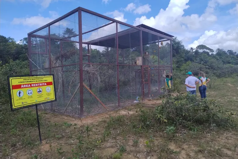 As aves, símbolo da fauna amazônica, passam atualmente por um período de aclimatação em viveiros adaptados, com alimentação à base de frutas regionais e treinamentos de pré-soltura, antes de retomarem a liberdade.