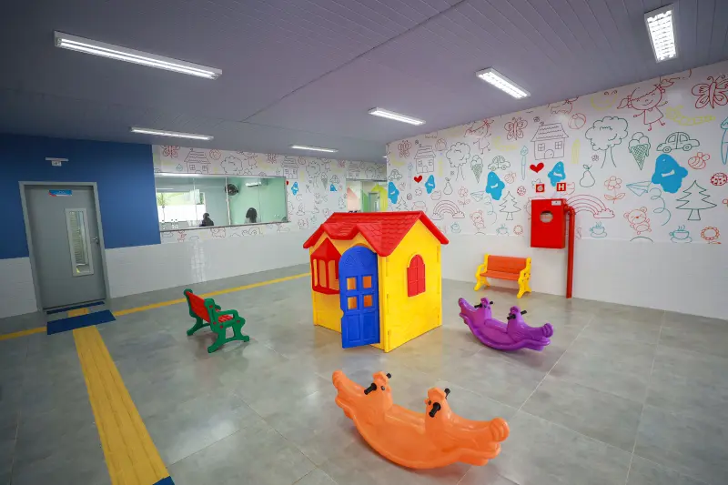A nova unidade do Creches por Todo o Pará tem altíssimo padrão, contando inclusive com dois blocos. São 10 salas de aula, 1 sala multiuso, 4 banheiros masculino e feminino, 3 banheiros para Pessoas com Deficiência (PcD), ala administrativa, lactário, berçário, lavanderia, cozinha, pátio, playground, redário, horta, entre diversos outros espaços para garantir maior desenvolvimento pedagógico, conforto e educação de qualidade para as crianças.