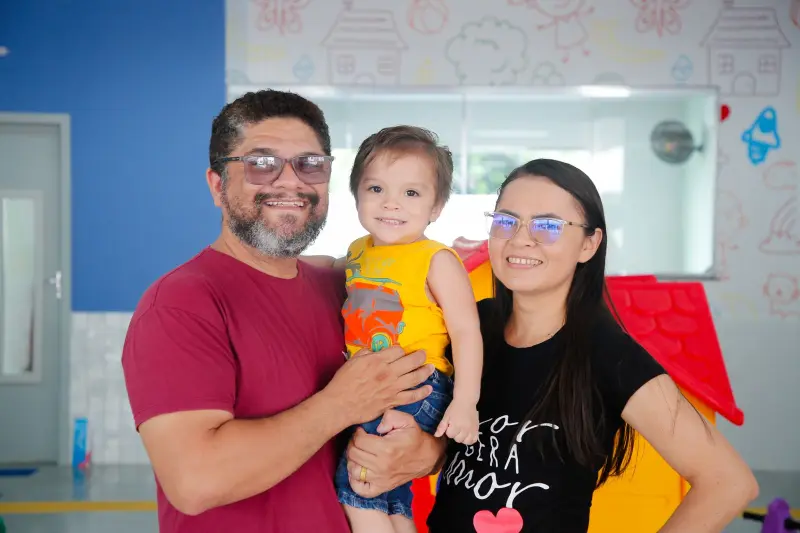 Presentes para conhecer a nova creche - a única que atende crianças a partir de 0 anos no município - Filho Soares e Leudiane Lima, pais do pequeno Hageu Soares de apenas 1 ano e 9 meses, receberam com grande alegria e entusiasmo o novo equipamento educacional. “Eu penso que dá para unir duas coisas aí, a atenção com a criança, porque eu sei que não é somente um lugar para deixar a criança, na verdade, vai seguir também para o crescimento educacional. Além disso, tem o fator econômico, porque como pai, se tiver a ajuda da mãe trabalhando também, é um reforço muito grande, até porque ele vai crescer, vai precisar também de mais apoio na frente. Ter os dois trabalhando ajuda muito, e a creche veio para ajudar nesse sentido as famílias”, ressalta Filho Soares.