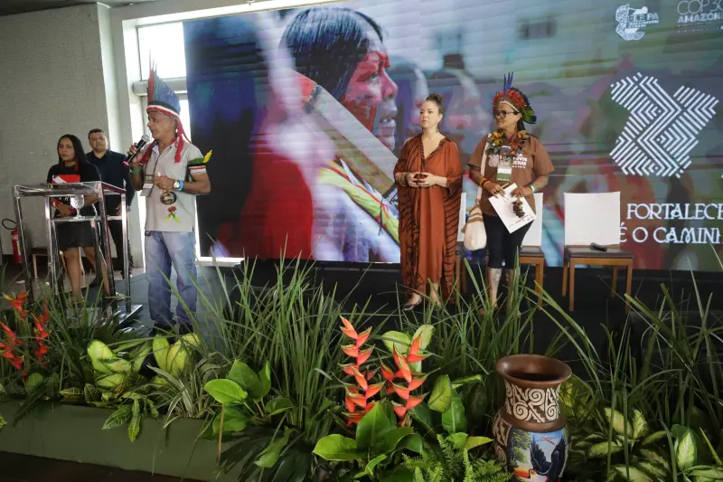 Na sequência, a secretária de Cultura do Estado, Úrsula Vidal, conduziu a palestra Ancestralidade e Produção Cultural dos Povos Indígenas e ressaltou o papel transformador do evento. "Assim como é uma frente de luta, este também é um espaço de entregas. O governo estadual e o federal estão presentes com políticas públicas, sempre com o apoio da federação dos povos indígenas. Os povos indígenas nos alertam há séculos sobre as mudanças climáticas, e este já é um momento de dar voz a eles na COP 30", afirmou.