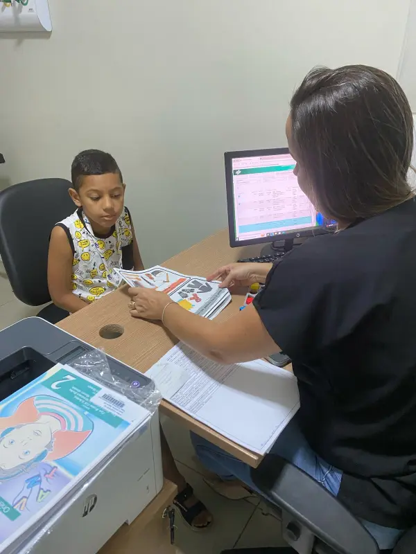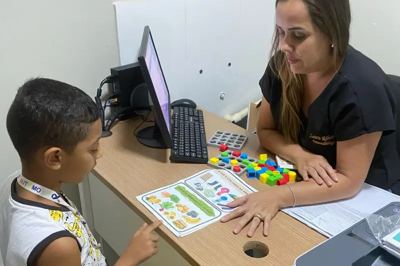 Antônio Henrique, de 7 anos, tem dificuldades ao falar. Ao saber do serviço na unidade administrada pelo Instituto de Saúde Social da Amazônia (ISSAA), em parceria com a Secretaria de Estado de Saúde Pública (Sespa), a família do menino recorreu à unidade. Ele iniciou o tratamento com a fonoaudiologia da Poli Tucuruí, e hoje já apresenta resultados com as sessões.