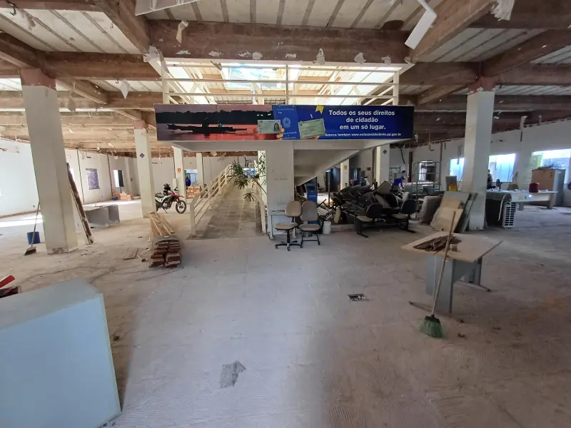 “A obra da Estação Cidadania de Santarém segue em pleno desenvolvimento para trazer mais conforto, modernidade, segurança e infraestrutura na prestação de serviços à população e aos servidores que trabalham na unidade. Já realizamos a impermeabilização de calhas e rufos, garantindo proteção contra infiltrações e aumentando a durabilidade das estruturas; a revitalização total do telhado; remoção e preparação de pisos, revestimentos e forros antigos para instalação de novos acabamentos e início da adequação das redes elétrica e hidrossanitária. Até a conclusão das obras da unidade de Santarém, os atendimentos à população estão sendo realizados provisoriamente no Terminal Hidroviário Joaquim da Costa Pereira”, explicou Derlon Silva, coordenador do setor de Arquitetura e Engenharia da Seplad.