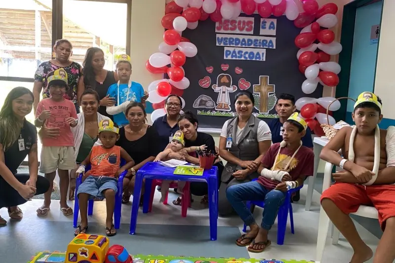 Iniciativa – Dentro da programação com ações de humanização, neste mês, em alusão à Páscoa, a equipe do hospital realizou uma série de atividades lúdicas com as crianças internadas, como distribuição de doces e a oferta de refeições diferenciadas para usuários, acompanhantes e colaboradores, fortalecendo o cuidado humanizado e o acolhimento no ambiente hospitalar.