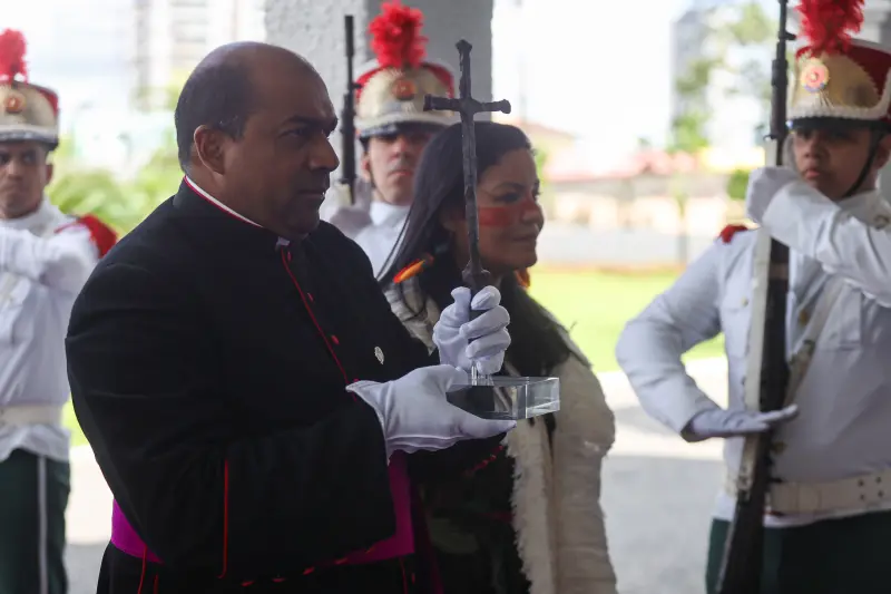 "Receber a primeira cruz da celebração inicial do território brasileiro é certamente de um simbolismo extraordinário e, em se tratando de Belém, capital do Círio de Nazaré, da maior procissão católica do mundo, é algo que nos toca e nos homenageia de maneira muito especial", destacou o governador. "Esse é um momento muito importante para a comunidade católica do Estado do Pará e também para a história do nosso país", completou Helder Barbalho.