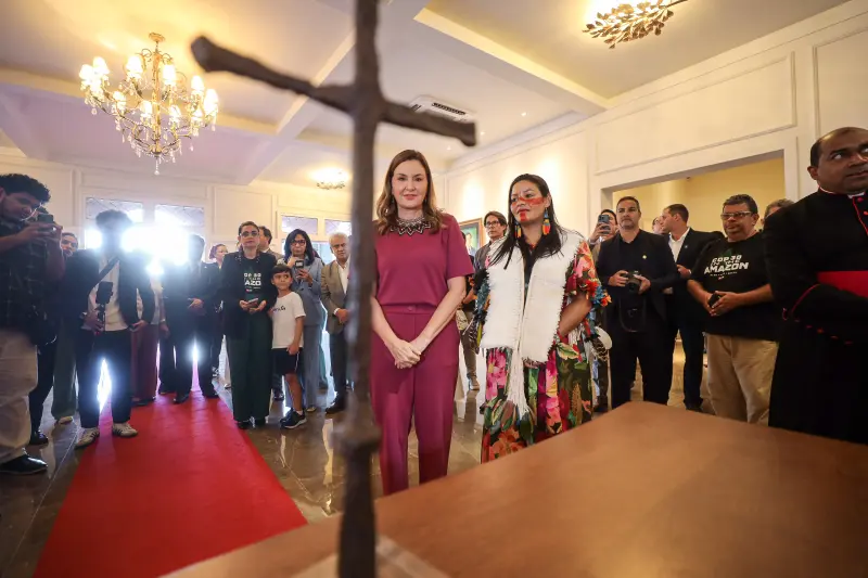 A cruz foi recebida pelo governador do Pará, Helder Barbalho, e pela vice-governadora, Hana Ghassan, no Palácio do Governo. O item religioso também percorreu a sede do Comitê Estadual da COP30, onde uma benção foi concedida em frente ao relógio que marca a contagem regressiva de 200 dias para a conferência do clima que acontecerá em novembro.