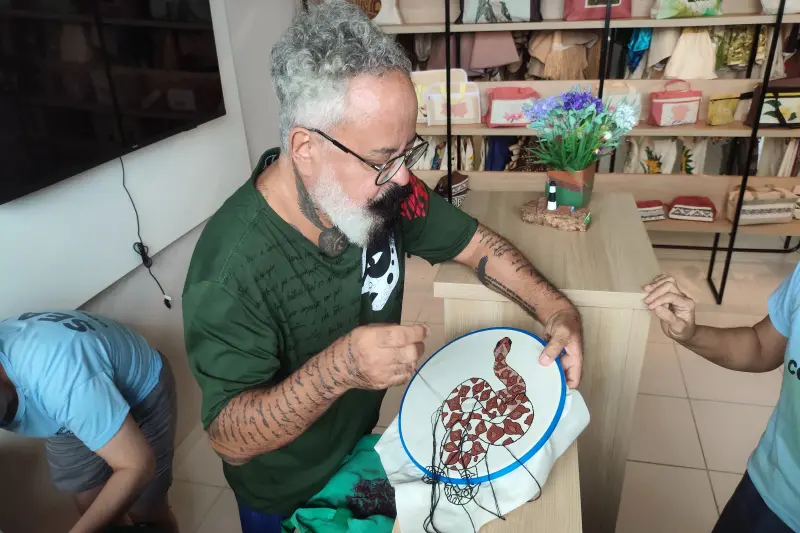 O estilista Ronaldo Fraga esteve nesta terça-feira (28) na sede da Coostafe (Cooperativa Social de Trabalho Arte Feminina), localizada na Unidade de Custódia e Reinserção Feminina de Ananindeua (UCRF), na Região Metropolitana de Belém. A visita foi marcada por emoção e reconhecimento ao trabalho das mulheres custodiadas que participaram da confecção do figurino da ópera "Cobra Norato – Terras do Sem Fim", espetáculo que abriu o XXIV Festival de Ópera do Theatro da Paz.