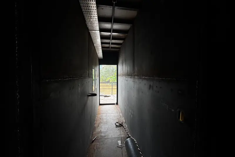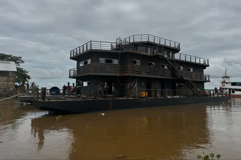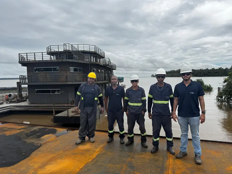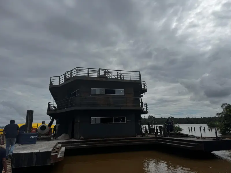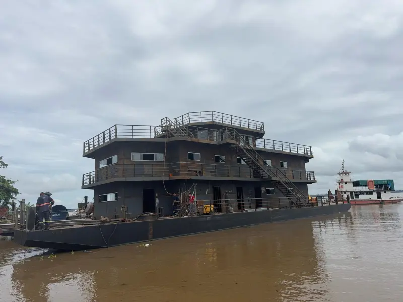 *Fase final* - A obra atingiu a etapa de ajustes no flutuante principal e nos flutuantes intermediários que auxiliarão a sustentação na área fluvial, além das passarelas articuladas que darão acesso à Base para pessoas e embarcações. Esses serviços são necessários para que a estrutura possa receber a pintura, o acabamento interno, revestimento e instalação das redes de água, esgoto e elétrica.