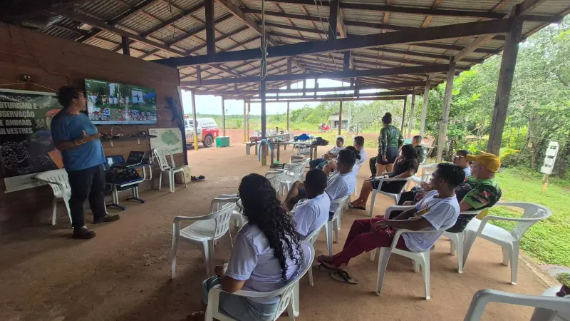 Bioeconomia - “O curso foi uma oportunidade de escuta e troca de saberes. A comunidade demonstrou grande interesse pelo turismo de base comunitária como forma de proteger seu território e gerar renda a partir de seus próprios conhecimentos”, afirma Claudia Kahwage, técnica em gestão ambiental do Ideflro-Bio, que acompanhou a atividade em campo.