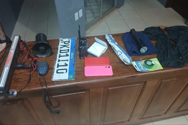 Agentes da 3ª Companhia Independente de Missões Especiais também apreenderam uma caminhonete, dois rádios-comunicadores, giroflex, celulares, um rádio de viatura e material explosivo