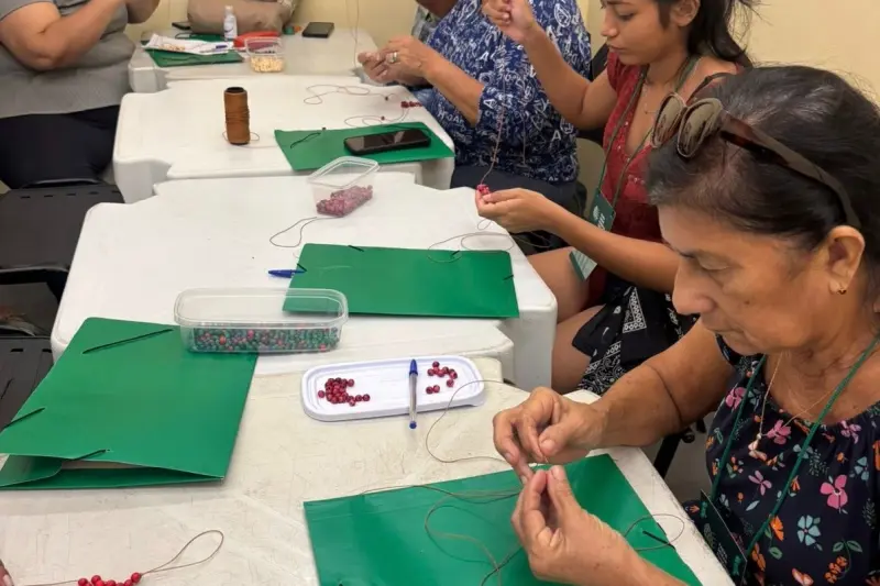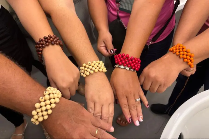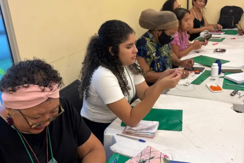 Para Elke Lima, de 49 anos, o curso representa mais do que uma nova habilidade. Mesmo com o marido já atuando na produção de biojoias, ela decidiu se inscrever para aumentar a renda da família e, ao mesmo tempo, como uma forma de terapia.