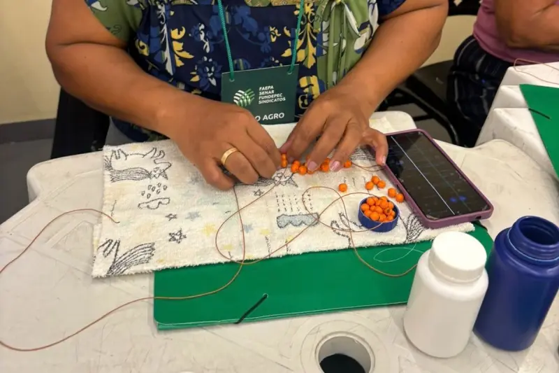 Um deles é o curso de biojoias, que ensina as alunas a transformar materiais naturais em peças artesanais prontas para serem comercializadas. Realizado em parceria com o Senar, o curso tem 40 horas de duração e conta com 20 alunas. É um incentivo à sustentabilidade, mostrando que recursos da natureza podem ser utilizados de maneira consciente e gerando renda.