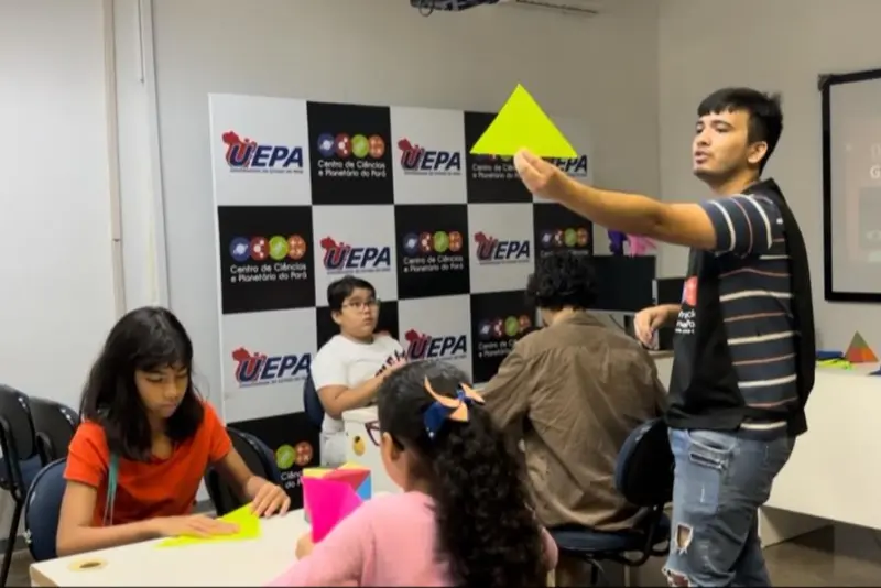 Programação - Entre os destaques do evento estão as oficinas de origami e xadrez. Inocêncio Costa, licenciado em Matemática pela Uepa e ex-estagiário do CCPPA, irá conduzir a atividade sobre origami. Ele explica que esta prática oriental e milenar estimula a concentração, para a realização das dobraduras, e auxilia no conhecimento das formas geométricas que compõem as figuras formadas. Inocêncio já havia ministrado a oficina durante a programação “Planetário nas Férias”, ocorrida em julho de 2024, e afirma que o público aprovou a iniciativa.