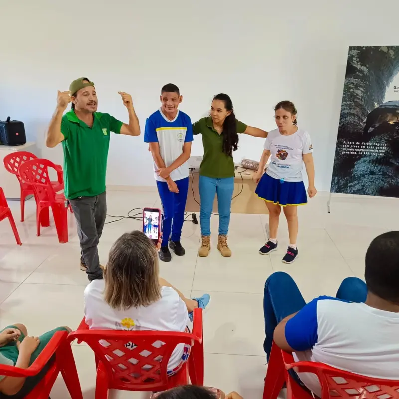 Durante a atividade, os participantes foram envolvidos em dinâmicas lúdicas e educativas sobre temas como preservação da natureza, valorização da fauna e flora locais, e responsabilidade ambiental. Todo o conteúdo foi adaptado pela equipe técnica do Ideflor-Bio para garantir acessibilidade e compreensão, respeitando as especificidades do público atendido pela Apae.