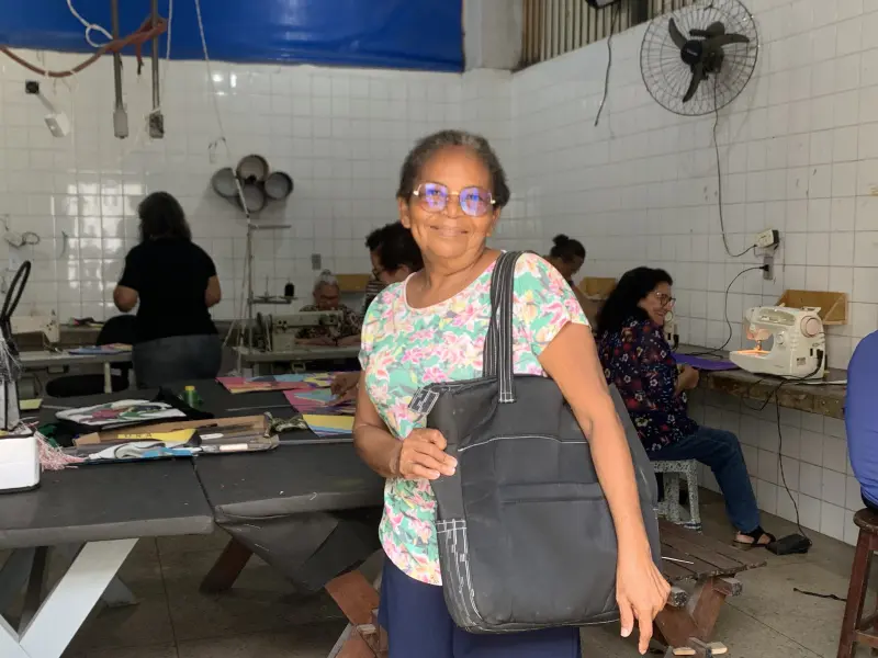 Desde então, Rosa se tornou uma artesã dedicada. Aprendeu costura do zero — não sabia nem passar linha na agulha — e hoje confecciona bolsas e mochilas que vende para vizinhos, parentes e conhecidos. Com o apoio do filho, que estuda marketing, criou uma marca própria e divulgou seus produtos nas redes sociais. “Meus filhos e netos não compram mochila, sou eu que faço. Hoje, eu tenho orgulho do que construí com minhas próprias mãos”,