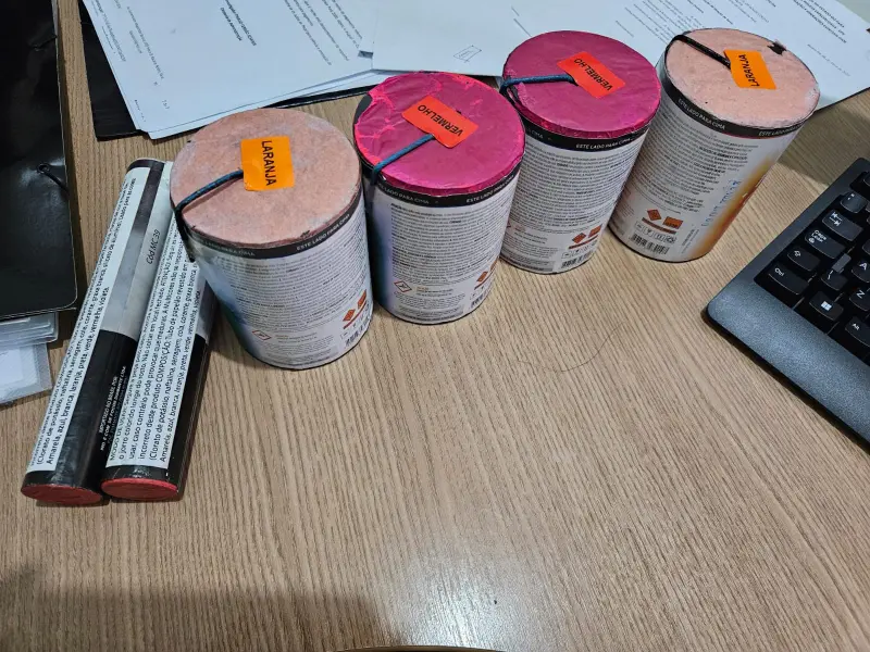 Entre os investigados, dois indivíduos foram apresentados por portar bombas caseiras e, por esta razão, também foram lavrados dois TCOs, um para cada envolvido, em consideração ao Artigo 201, § 1º, inc. II, da Lei Geral do Esporte, que prevê como crime o porte de materiais que podem ser utilizados para a prática de atos de violência em eventos esportivos.
