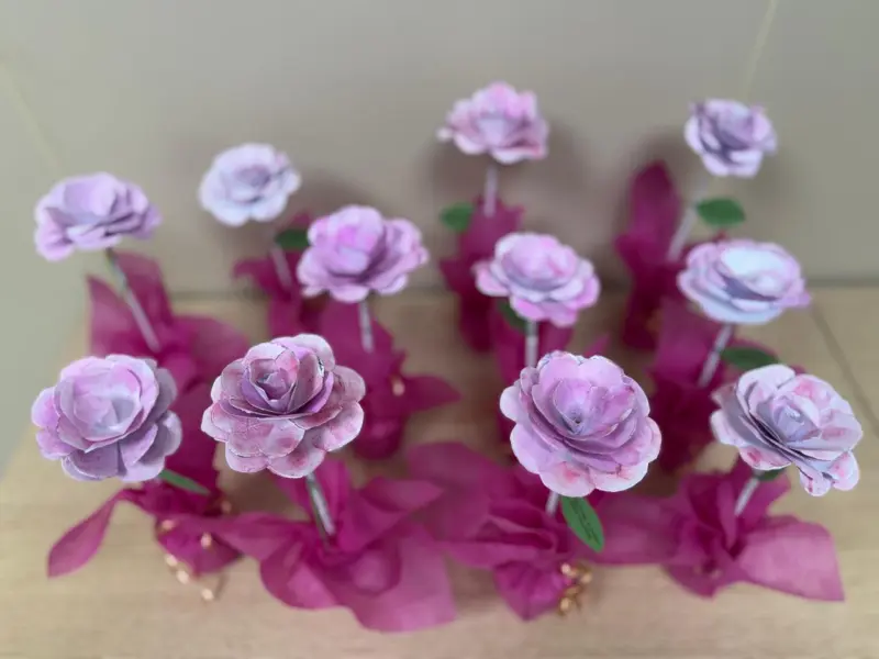 O papel também foi utilizado na decoração das mesas do refeitório, em alusão ao Dia das Mães, com a confecção de flores. Os cartazes utilizados nas divulgações internas de eventos e campanhas que precisam ser visualizadas pelos profissionais também são impressos em papéis descartados.