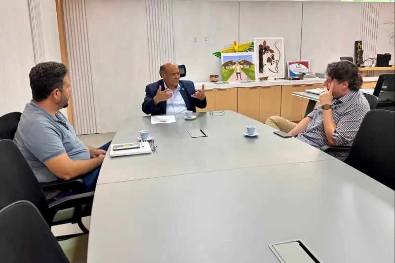 O Instituto de Desenvolvimento Florestal e da Biodiversidade do Pará (Ideflor-Bio) e a Fundação Amazônia Sustentável (FAS) reforçaram, nesta sexta-feira (16), em Belém, a parceria estratégica para a proteção da floresta amazônica. O presidente do Ideflor-Bio, Nilson Pinto, recebeu o superintendente de Inovação e Desenvolvimento Institucional da FAS, Victor Salviati, para discutir os próximos passos da cooperação entre as duas instituições. Entre os temas debatidos, esteve a prospecção de áreas para a criação de novas Unidades de Conservação (UCs) estaduais.