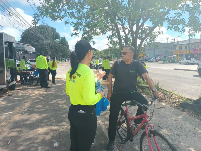 Condutores de veículos e ciclistas receberam orientações sobre trânsito seguro na avenida