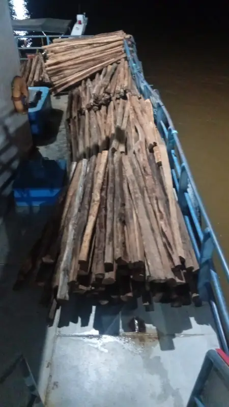 Detalhes da apreensão - Durante a vistoria da embarcação, a equipe da Polícia Militar Ambiental constatou o transporte irregular dos seguintes volumes de madeira: 5,22 m³ de guaruba; 4,15 m³ de angelim; 4,96 m³ de acapu; 10,26 m³ de mourão, de diversas espécies.