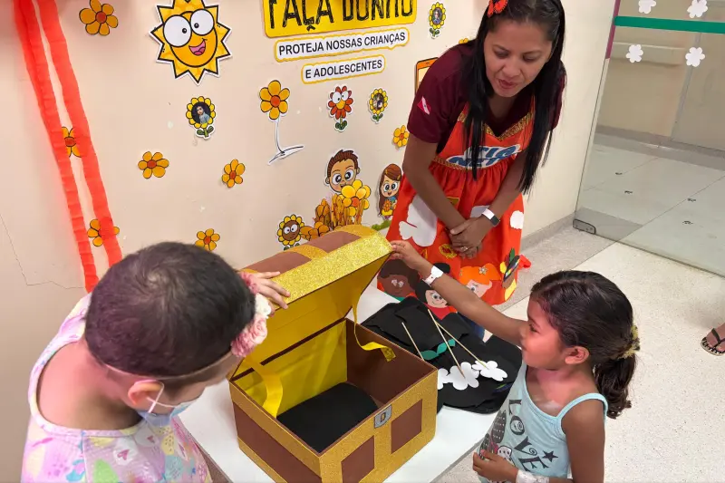 Em alusão ao Maio Laranja, mês dedicado à prevenção da violência sexual contra crianças e adolescentes, o Hospital Oncológico Infantil Octávio Lobo (Hoiol) promoveu, na terça-feira (27), uma ação educativa marcada por dinâmicas lúdicas e mensagens de empoderamento infantil. A iniciativa, conduzida pela assistente social e voluntária Rocinete Costa, reuniu pacientes em uma atividade cuidadosamente pensada para tratar de um tema sensível de forma acessível, respeitosa e eficaz.