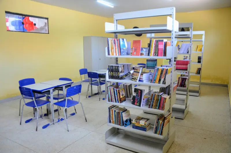 A sala de leitura também foi reorganizada, ganhando um espaço mais agradável e funcional para os alunos. Além disso, foi construída uma nova cozinha. Os banheiros também passaram por uma grande transformação: de um único banheiro compartilhado entre meninos, meninas e servidores, a escola agora dispõe de quatro banheiros femininos, dois masculinos, um banheiro acessível para Pessoas com Deficiente (PCD) e um banheiro exclusivo para os servidores.