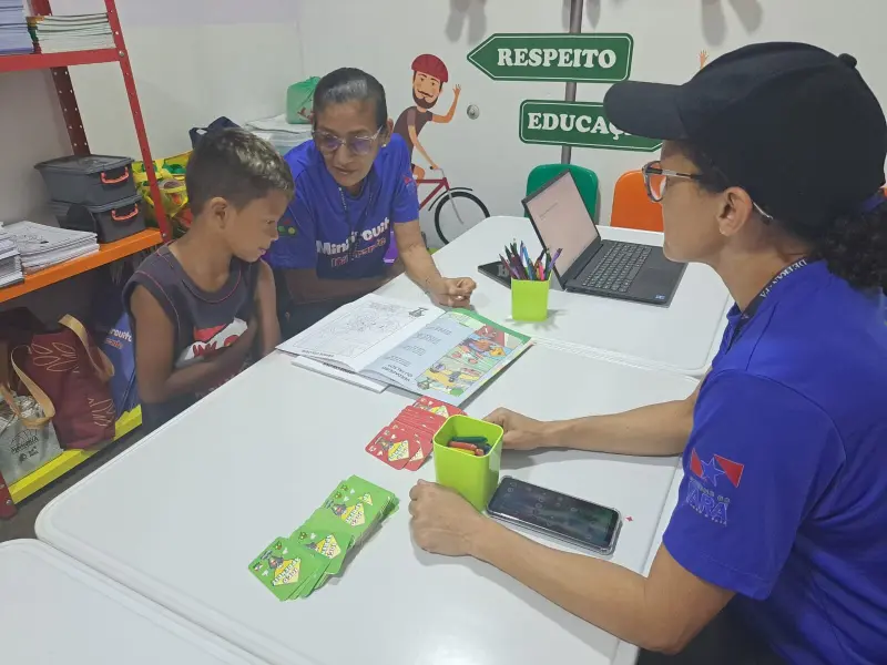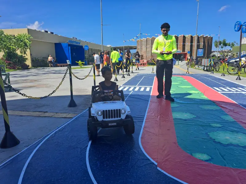 O estudante Enzo Haniel, de 8 anos, contou como foi sua experiência no espaço, compartilhou o que aprendeu durante a atividade com os agentes de educação e ficou encantado ao conhecer o mascote do Detran. “Eu aprendi como atravessar o sinal e também gostei do mascote, porque ele é muito legal. Tem que esperar os carros pararem pra atravessar, porque senão, eles avançam, e aí pode acontecer um acidente e isso não é legal. Também aprendi como andar certo na moto: tem que ser uma criança com mais de 10 anos indo atrás e um adulto na frente. A criança não pode ir na frente, porque o veículo pode cair junto com a criança. Tem que usar capacete e também a viseira. Aprendi também que não pode usar celular quando está dirigindo, não pode dirigir bêbado e tem que usar o cinto de segurança. Quando eu chegar na minha casa, vou falar pra minha mãe que eu aprendi tudo no Detran”, comentou. As ações da carreta na Usipaz Bengui seguem até o próximo sábado, 31.