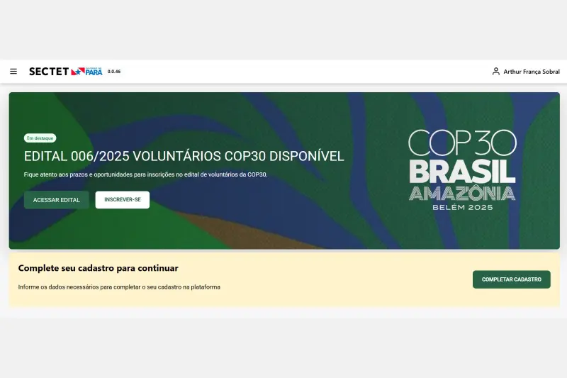 O Governo do Pará, em parceria com o Governo Federal, lançou nesta quinta-feira (29) o programa Voluntariado COP 30, que vai selecionar cerca de 3.946 voluntários para atuarem durante a Conferência das Nações Unidas sobre Mudanças Climáticas, em Belém, entre os dias 10 e 21 de novembro. As inscrições, gratuitas e sem limite de candidatos, seguem até 5 de junho.