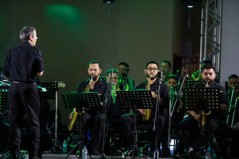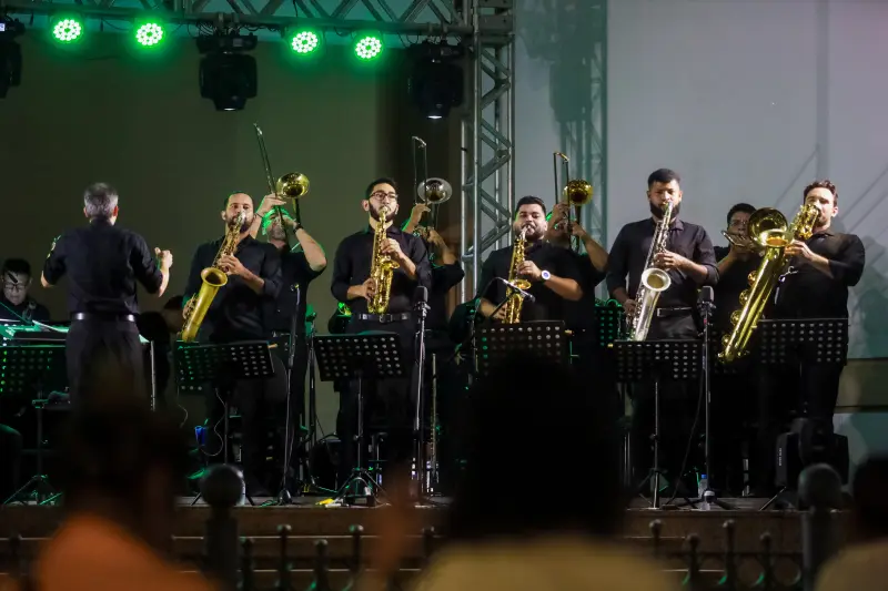 A Big Band do Theatro da Paz apresentou um  repertório eclético,  que reuniu músicas em homenagem ao Círio de Nazaré e ao Estado, como Voando pro Pará, da cantora Joelma encerrando a programação Mariana.