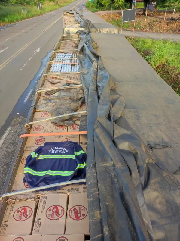 “Durante fiscalização realizada no posto fiscal de Jarbas Passarinho, foi abordado um veículo transportando mercadorias provenientes de Vitória de Santo Antão (PE) com destino a Belém . Após a verificação física, documental e no sistema, constatou-se que o contribuinte deixou de recolher, no prazo regulamentar, o ICMS antecipado relativo à entrada da mercadoria no território paraense. O veículo transportava bebidas alcoólicas, totalizando 50 mil unidades entre latas e garrafas de aguardente, distribuídas em 4.200”, relatou o coordenador da unidade fazendária, Cicinato Oliveira.