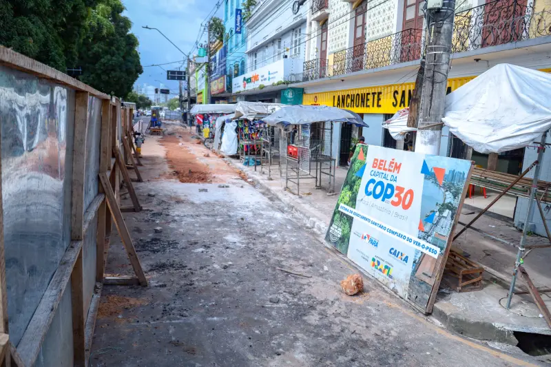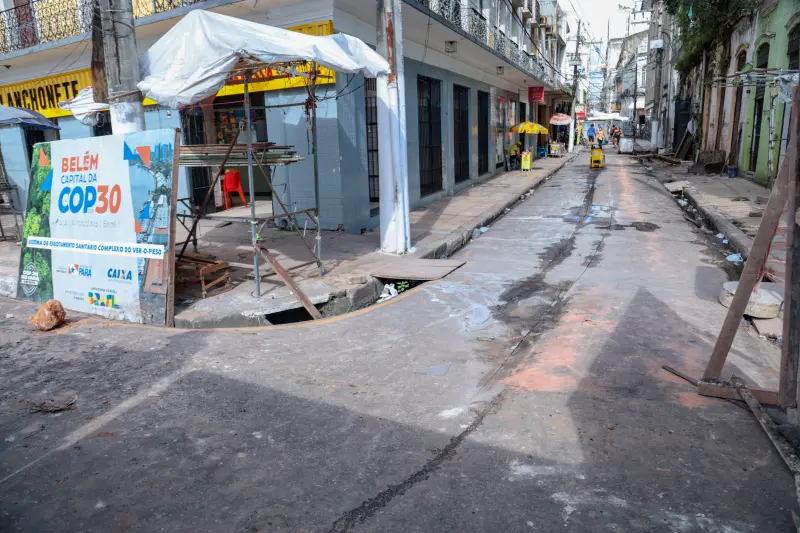 A obra do primeiro sistema de coleta e tratamento de esgoto da área do Ver-o-Peso, no bairro da Campina, em Belém, alcançou 56% de serviços executados. O saneamento do espaço, que beneficiará cerca de 60 mil pessoas, é um dos legados da Conferência das Nações Unidas sobre Mudanças Climáticas, a COP 30, que ocorrerá na capital paraense em novembro.