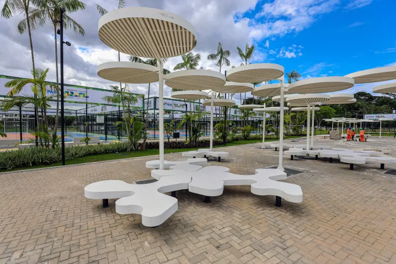 Urbanismo inteligente e legado sustentável - A instalação dos bancos térmicos também representa um novo olhar sobre o urbanismo em Belém, valorizando a experiência do usuário, incentivando o uso dos espaços públicos e promovendo mais acessibilidade, inclusão e qualidade de vida. O design inovador traz diferentes modelos de assentos, que contribuem para a beleza do parque e aumentam o conforto dos visitantes.