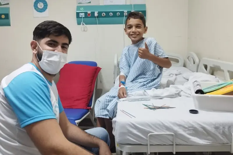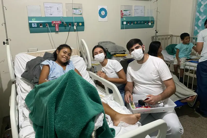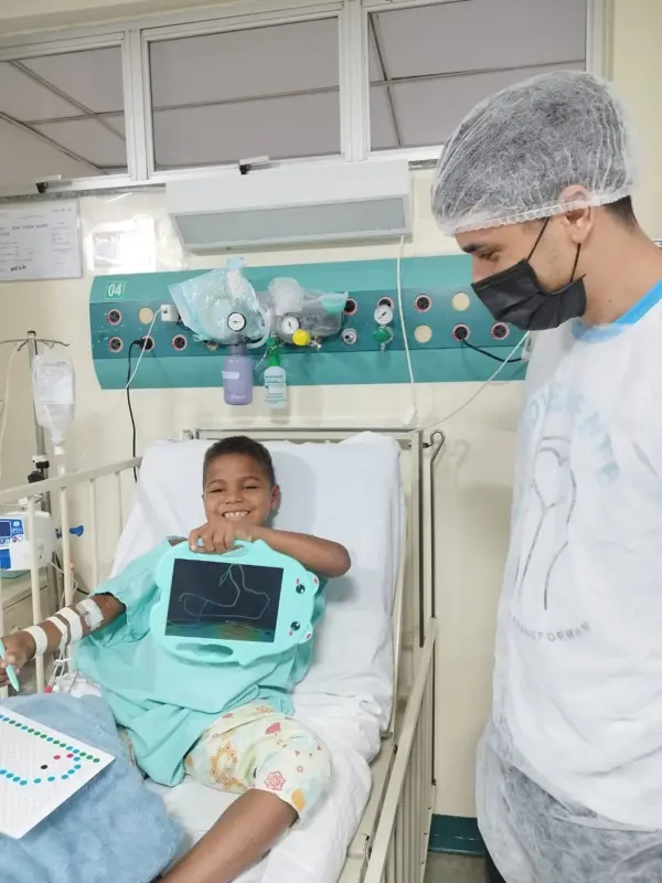 Desenvolvido por estudantes de medicina, como voluntários, e com o apoio do serviço de humanização do hospital, o projeto proporciona momentos de leveza e alegria aos pacientes internados, especialmente às crianças. A iniciativa inclui rodas de conversa e brincadeiras lúdicas, que promovem o bem-estar físico e emocional, contribuindo de forma significativa para a recuperação e o acolhimento durante a permanência hospitalar.