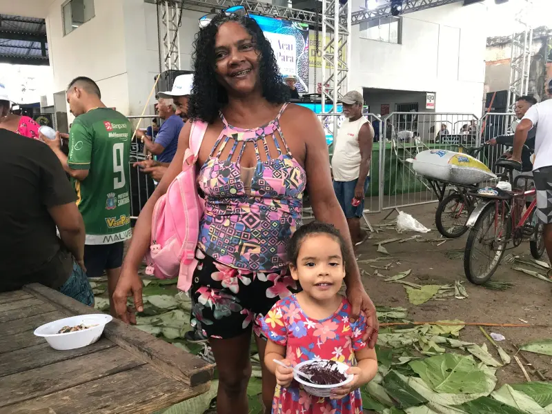 A moradora do bairro da Condor Odailza Almeida e a neta, Manuela, acordaram antes mesmo do sol nascer, nesta quinta-feira (12), com um objetivo comum. A exemplo delas, outros apaixonados pelo fruto típico do Pará – o açaí – foram cedo para o Porto do Açaí, no bairro do Jurunas, para degustar o “avuado” (açaí com peixe frito), distribuído gratuitamente, como parte da programação do Festival Açaí Pará, cuja terceira edição será aberta oficialmente nesta sexta-feira (13), no Hangar Centro de Convenções.