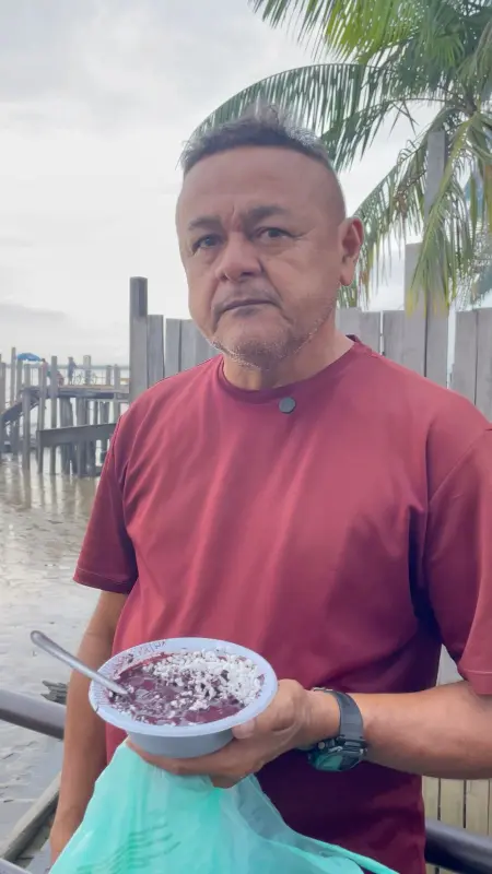 “Ela é de São Paulo. Está com a gente aqui no Pará, mas se encantou com o açaí. Não fica sem tomar e hoje a gente não poderia deixar de aproveitar porque está sendo dado de graça aqui. Está tudo muito bom. É como diz a música: quem vai ao Pará parou. Tomou açaí, ficou. Foi o caso da minha netinha”, disse a moradora da Condor.