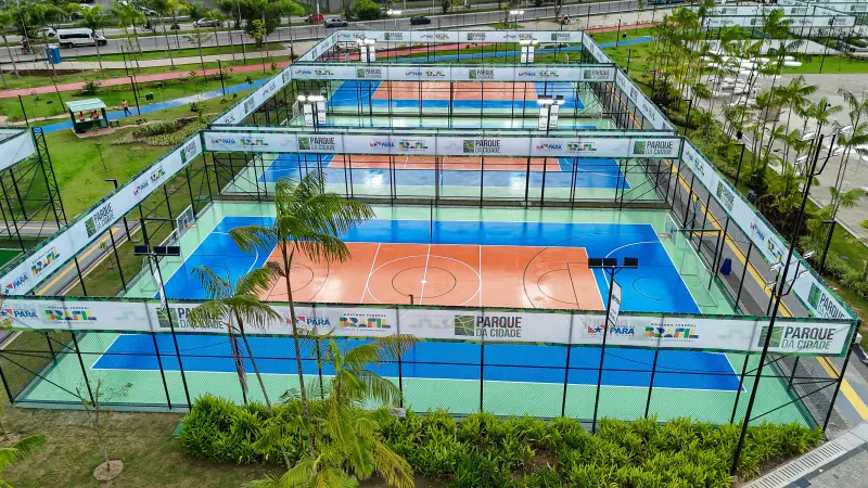 Em construção em uma área quase cinco vezes maior que o Estádio Olímpico do Pará (Mangueirão), o Parque da Cidade, em Belém, já desponta como um dos principais espaços de lazer e esporte da capital paraense. Ao todo, o complexo contará com 14 ambientes voltados à prática esportiva e recreativa, muitos deles concebidos com soluções sustentáveis, como o playground infantil, que tem piso produzido a partir da reciclagem de pneus.