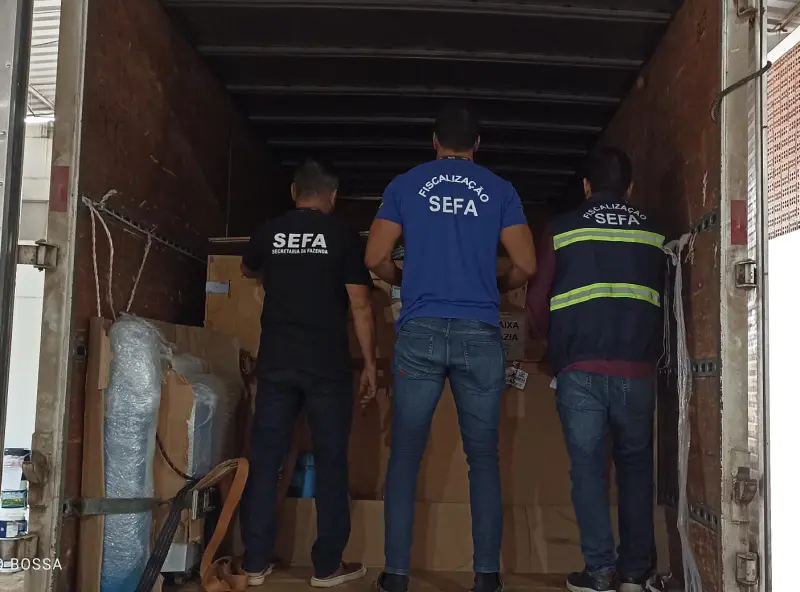 A operação de fiscalização conjunta incluiu servidores da Coordenação de Controle de Mercadorias em Trânsito, da Coordenação da Sefa em Tapajós, e da Coordenação de Substituição Tributária, além do apoio da Polícia Militar do Estado (PMPa).