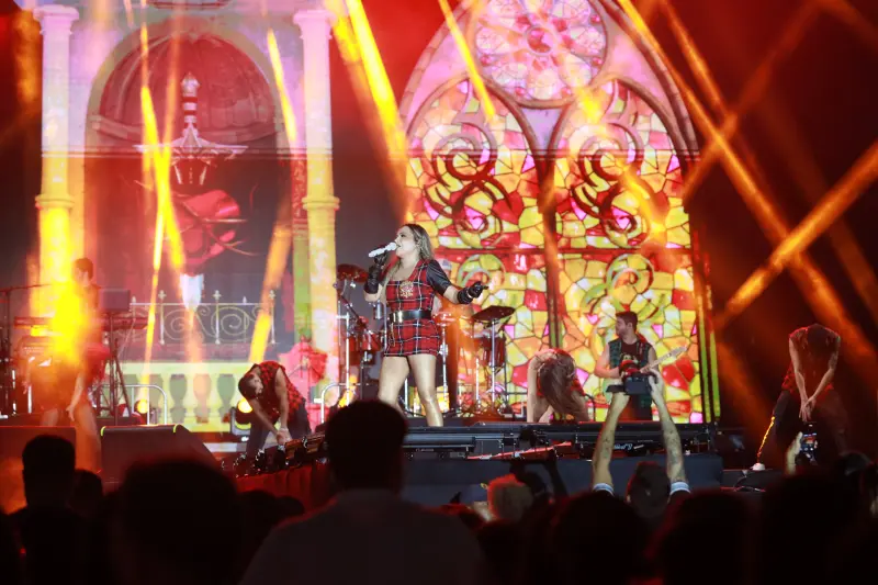Primeira a se apresentar neste domingo, Rebeca Lindsay trouxe a mistura de diferentes estilos musicais, como tecnomelody, brega e forró. Em seguida, a cantora Joelma subiu no palco para delírio da legião de fãs que aguardavam pela paraense.
