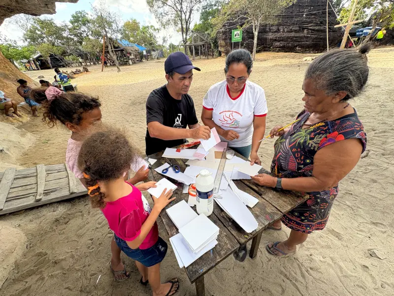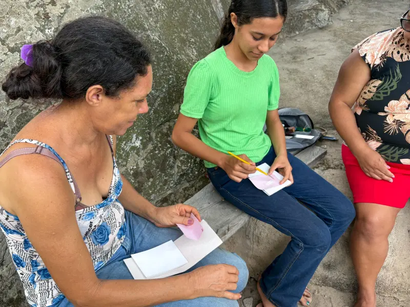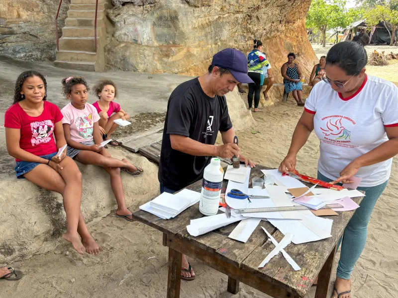 Aprendizagem - Entre as oficinas realizadas, a de cartonagem chamou a atenção dos participantes. Ministrada por André Teixeira, a atividade trabalhou a produção de blocos de anotações, sacolas e lápis sustentáveis. “A interação foi muito positiva. Mesmo com algumas limitações de estrutura, os participantes aceitaram bem a proposta. Como era uma novidade para muitos, todos ficaram curiosos com o processo e satisfeitos com os resultados”, relatou.