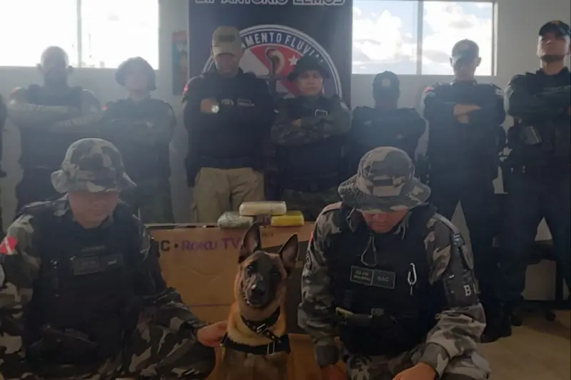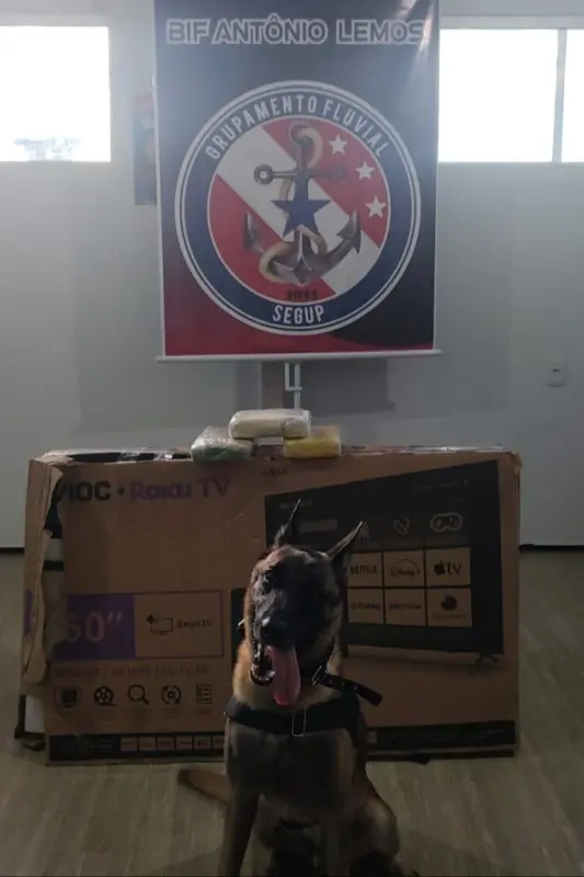 A apreensão ocorreu durante diligências de rotina no rio Tajapuru. Com o apoio de embarcações rápidas e do cão farejador "Anúbis", os agentes realizaram vistoria no navio “Anna Karoline VII”, quando o animal indicou a presença de material suspeito no setor de cargas. Ao abrirem a caixa contendo a televisão, foram encontrados três tabletes de skunk.