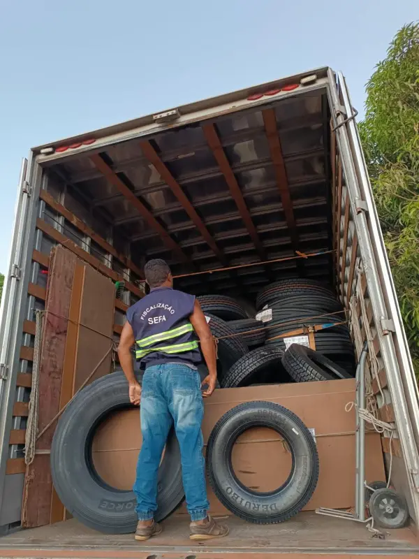 Equipes da Sefa apreendem veículos, pneus e portais de madeira
