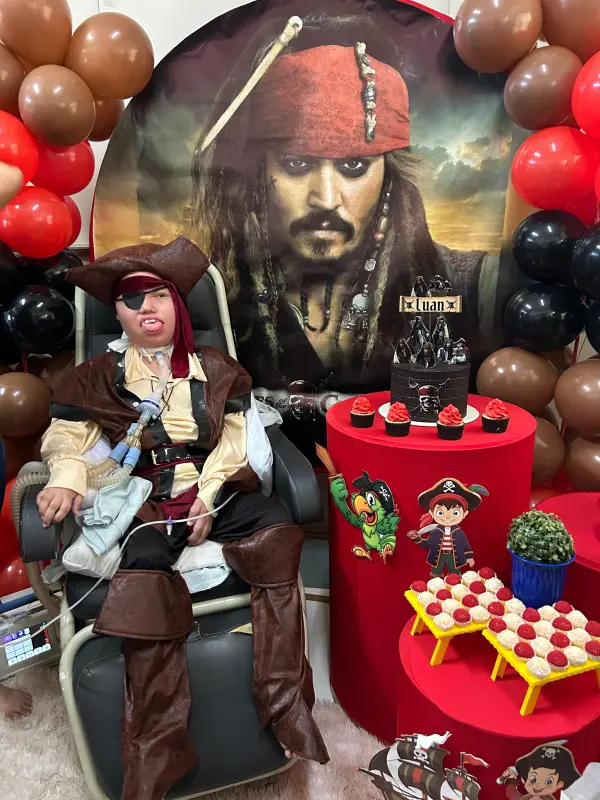 Aniversário - Com decoração inspirada no filme "Piratas do Caribe", o paciente Luan Gabriel Castro comemorou seus 15 anos no HRBA, onde está internado desde 2011. A celebração foi na sala escolar da Clínica Pediátrica, reunindo profissionais que acompanham o tratamento de Luan.