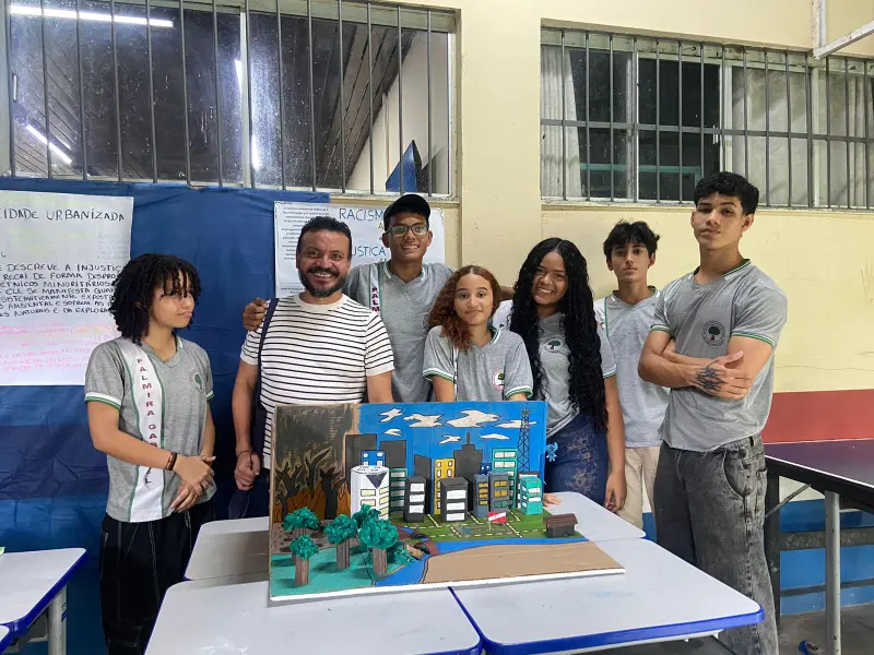Abertura de horizontes - “A Mini COP veio com toda essa carga de conceitos sobre justiça climática, mudanças climáticas, racismo ambiental, sustentabilidade. A gente pôde dar continuidade ao trabalho que vem sendo realizado desde a Conferência Infantojuvenil nessa atividade, que contou com o apoio de todos os professores e alunos. Foi uma atividade realmente interdisciplinar. Tivemos oficinas sobre o ODS 18 com palestrantes de fora da escola. A gente fez essa parceria também com a UFPA (Universidade Federal do Pará) e com a BSGI (Brasil Soka Gakkai Internacional), uma ONG ligada à paz e educação no mundo. Com essa atividade, a gente pôde abrir esse horizonte para novas perspectivas dentro da Escola, e teve a participação de todos, do porteiro à merendeira”, contou Valdenise Araújo, professora de Educação Ambiental e idealizadora do projeto.