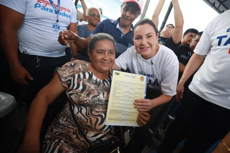 A autônoma Edileuza Silva é uma das 40 mil pessoas contempladas com as entregas de títulos definitivos de terra no Pará, desde o início da atual gestão do Governo do Estado, por meio do Instituto de Terras do Pará (Iterpa). Na manhã desta quarta-feira (25), 588 pessoas foram contempladas em Santo Antônio do Tauá, no nordeste paraense. “Essa é uma conquista, sonhamos muito com esse momento. Agora, eu e meu filho temos mais segurança. Não tenho palavras para expressar tanta felicidade”, comemora Edileuza.