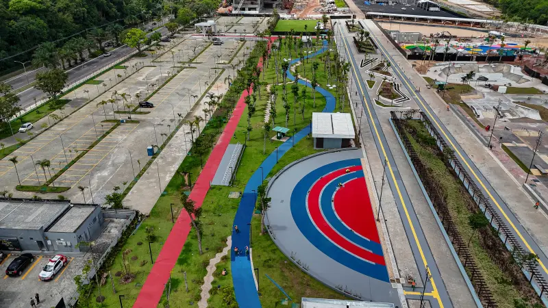Com uma área de 500 mil metros quadrados, o Parque da Cidade é a maior intervenção urbana da capital paraense voltada à COP30. O complexo é composto por 14 ambientes voltados à prática esportiva e recreativa, muitos deles com soluções sustentáveis, como o playground infantil com piso feito de pneus reciclados.